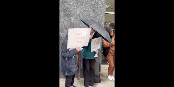Protesters chant "5, 6,7, 8. Citizens Bank stop the hate!"
